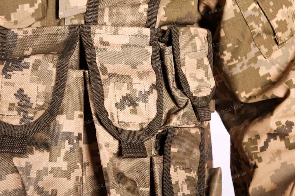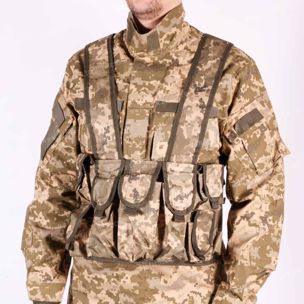 Разгрузка отлично подходит под камуфляж, много карманов, и ремешков, что поможет переносить с собой много груза, патронов, оружия. Отлично подходит для тактических заданий