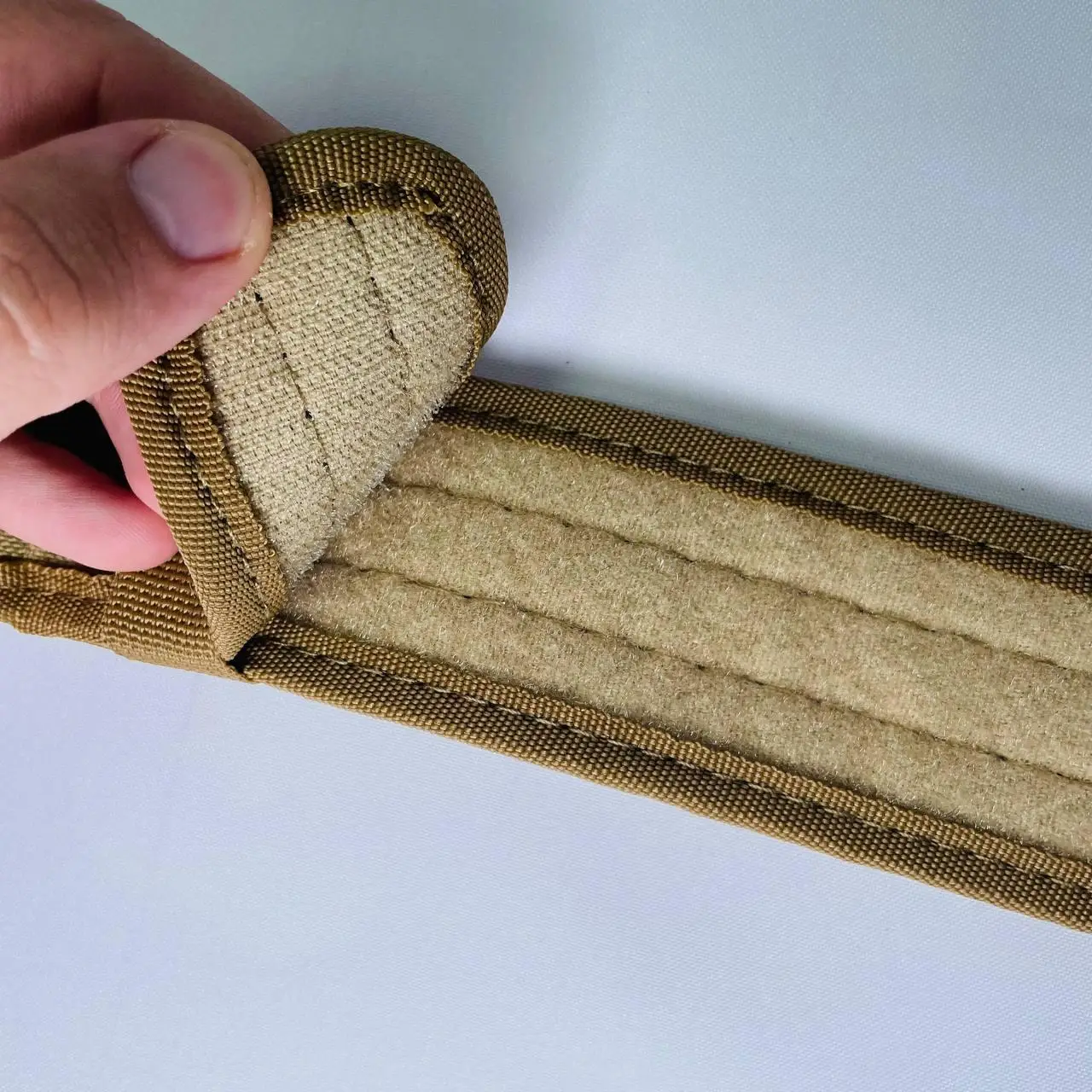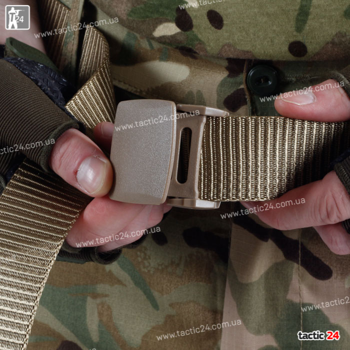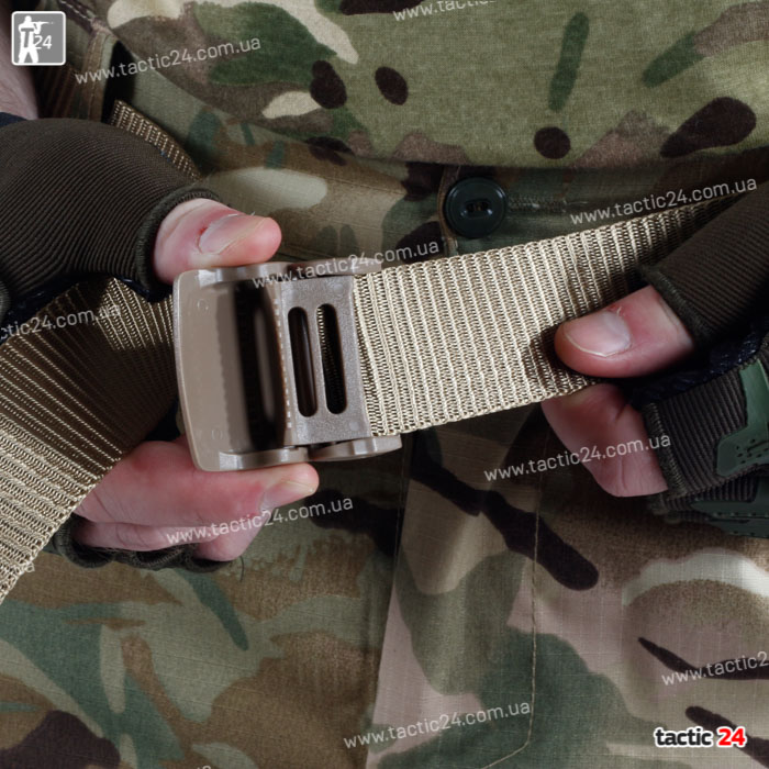 Тактичний ремінь виготовлений зі стропи підвищеної міцності, характеризується високою зносостійкістю і здатністю витримувати великі навантаження.