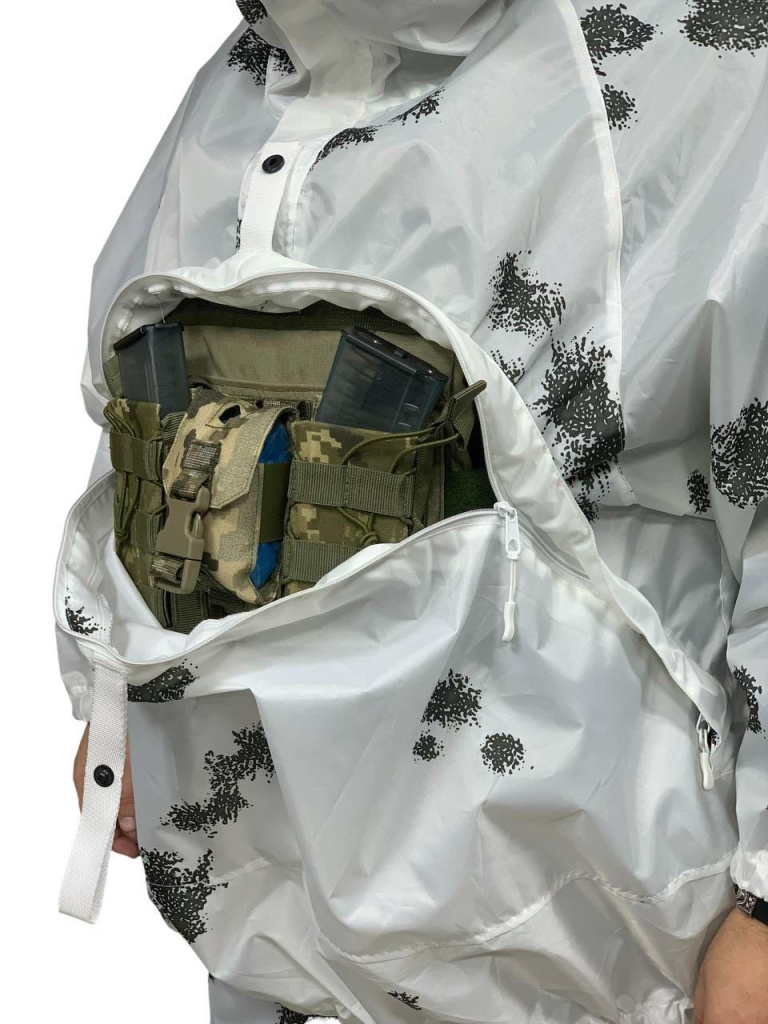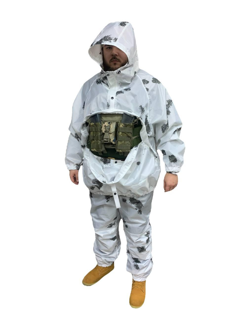 • Одягається поверх зимового одягу, для маскування. Чи не блищить на сонці. Не шарудить на морозі.